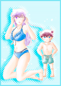 夏っぽく♪ 繋いでる手の先はもちろんデレデレしてる新一で!(笑)